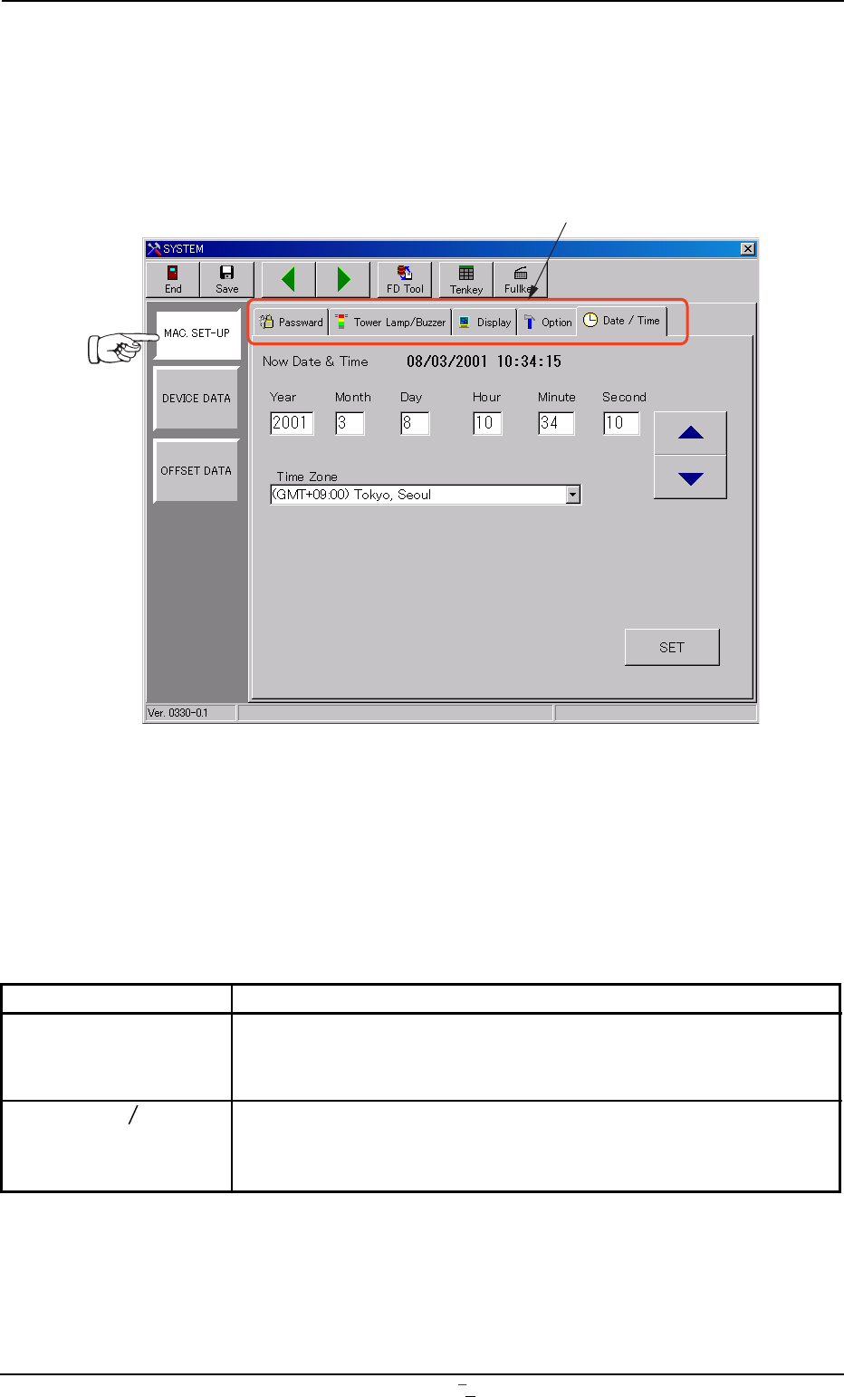 The "MAC. SET-UP" window (submenu) is provided with 5 tab