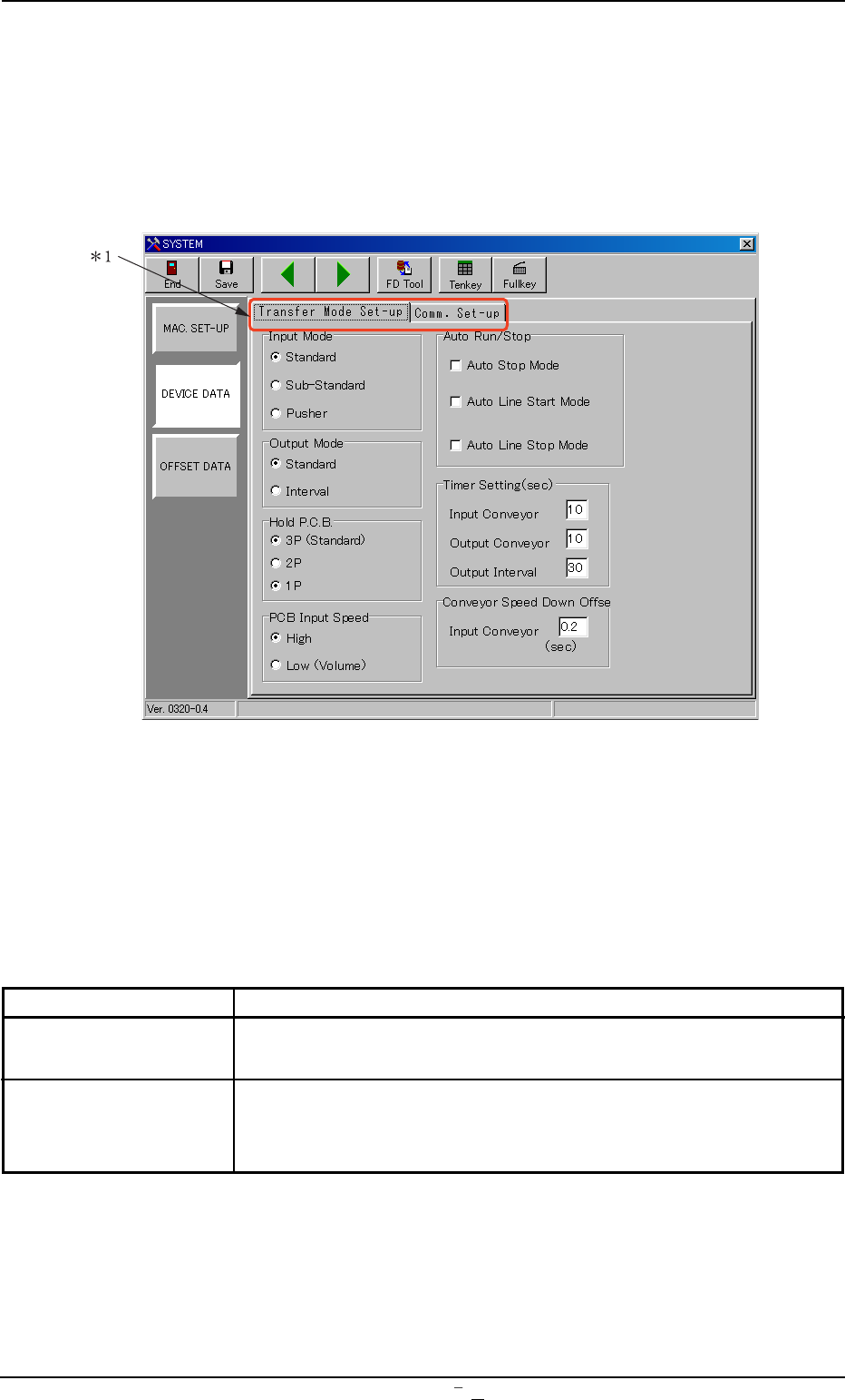 3.1 “Transfer Mode Set-up” Tab