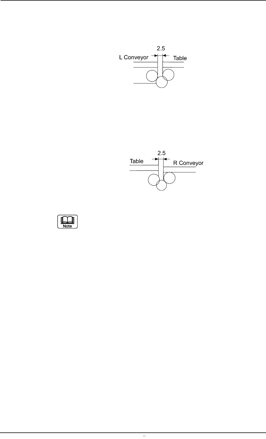 Input Conveyor : Enter an offset value based on the specified one (2.0 mm) as a clearance (dimension) in the X direction of the terminal area between the L conveyor and the table chute. Fig. 3D13-1 Output Conveyor : Ente…