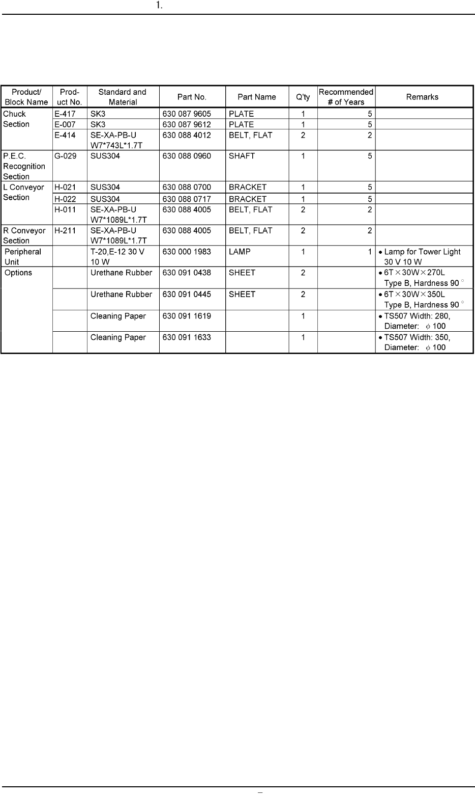 1. List of Consumables (Main Machine)