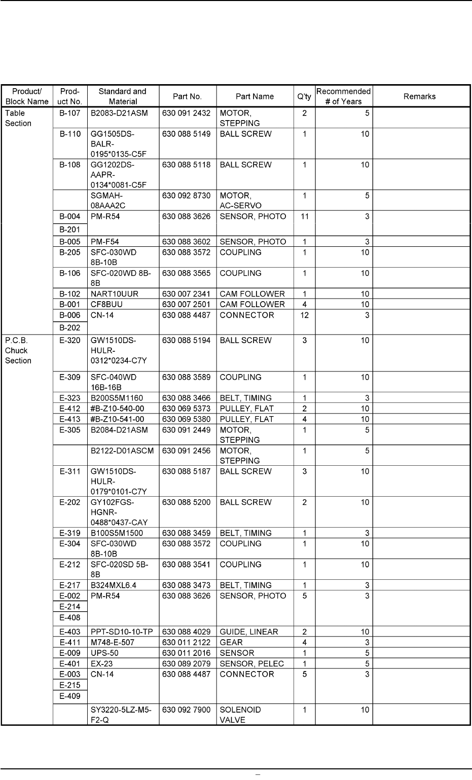 2. List of Servicing Parts [Mechanical Parts] T able 3B2 2. List of Servicing Parts 0004-001 Chapter 3 2 3 AFU01EINP