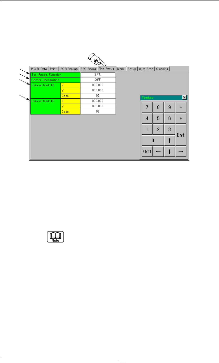 2.6 "Scr Recog" T ab • Sheet Layout When you push "Scr Recog" tab in the "Pattern Program" edit win- dow , the following tab sheet appears. Fig. 3B90 "Scr Recog" T ab Sheet • Sheet…