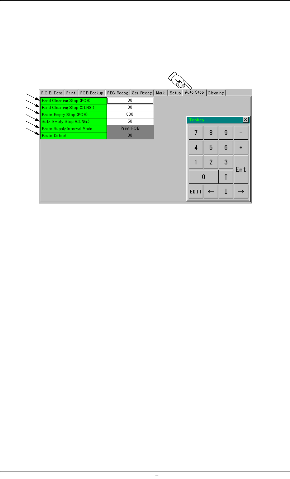 * 6 Paste Detect (Option) Make the tenkey window appear and enter a value in the text box. This data becomes valid only when "Paste Detect" is se- lected in the "Paste Supply Interval Mode" text box *…