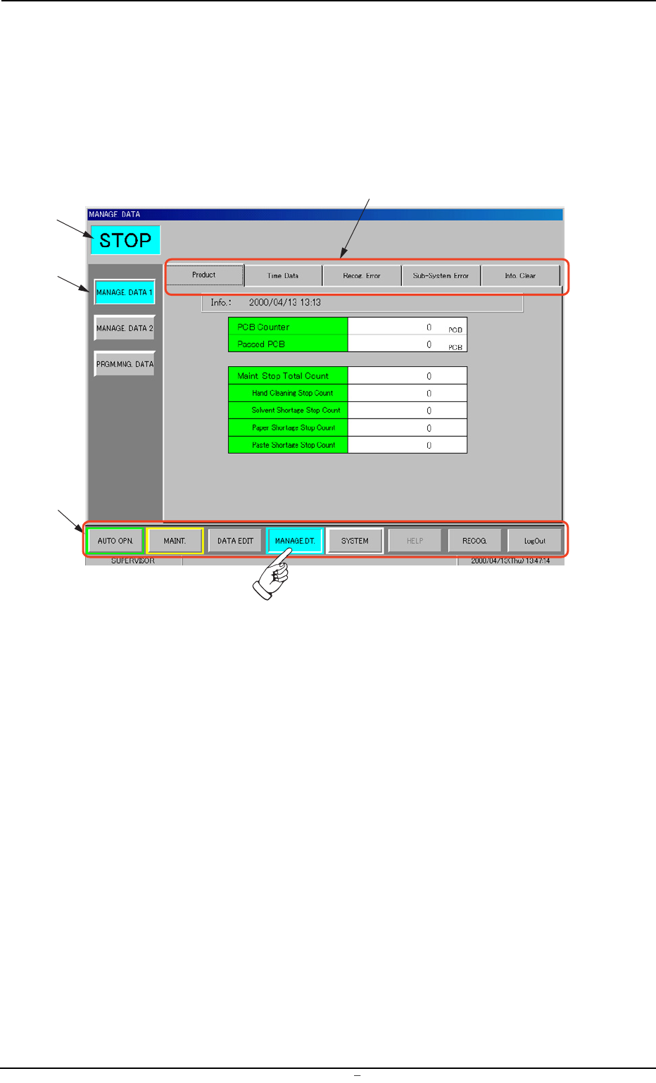1.1.1 Submenus and T ab Sheets The "MANAGE. DA T A" window is provided with the following 3 submenu buttons. MANAGEMENT DA T A Submenus T abs Reference Item Nos. MANAGE. DA T A 1 Product (2.1) T ime Data (2.2) …