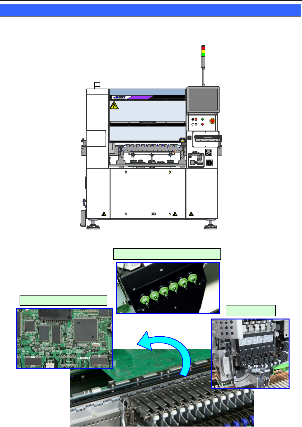 本设备,是在镀锡印刷基板上、或涂有焊锡的电子电路基板上贴装电子元件的一种设备。