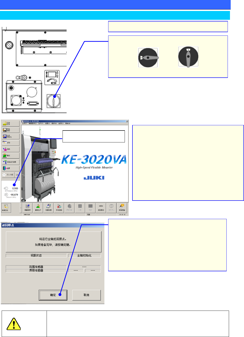 执行返回原点时,请绝对不要把手和头部等伸进装置内部。