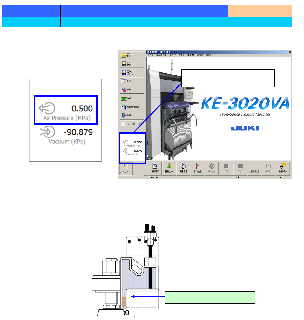 检查供给压力时,点击画面左下部(蓝框)区域,即显示当前压力。
