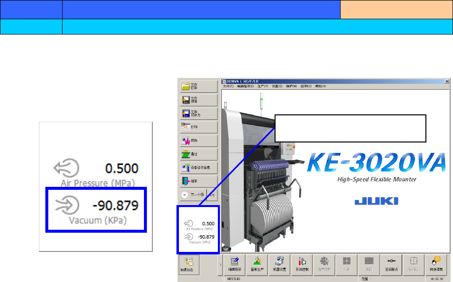 检查真空压时,点击画面左下部(蓝框)区域,即显示当前压力。