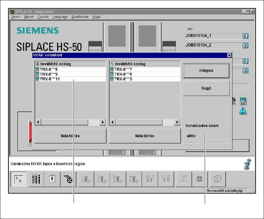 Üzemeltetési útmuta tó SIPLACE HS-50 5 Á llomásb ő víté sek Software-verzió: S R.50x.xx Kiadás: 01/2006 HU 5.4 A ny omtatott áramköri lap Bar-kódja 159 Æ A men üab lak státu szkij elzéséb en a Ba r-kódü zem ü zemi állapo…