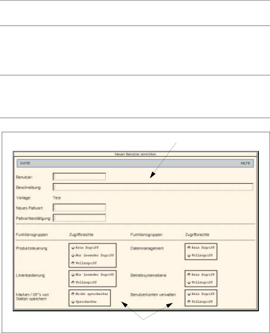 Üzemeltetési Útmutató, UNIX gépsorvezérlő számí tógép 3 Desktop (törzsablak) 501.xx jelű szoftver változat 99/1-es kiadás 3.2 Desktop (Munkaasztal) k ezelő felülete 3-3 3 Számla nyitása új felhas ználó rés zére ● A “ F e…