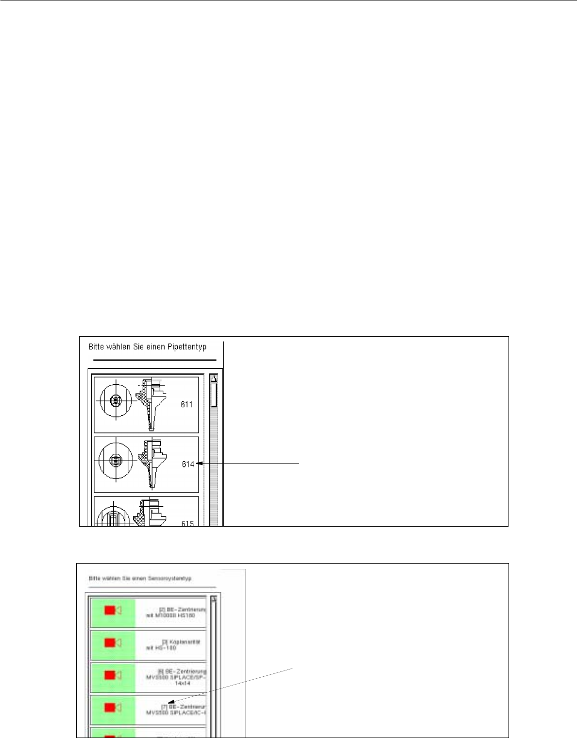 ● Kattintson rá a kívánt elemre (Sensorsystemtyp vagy Pipette (érzékelőrendszer típus vagy