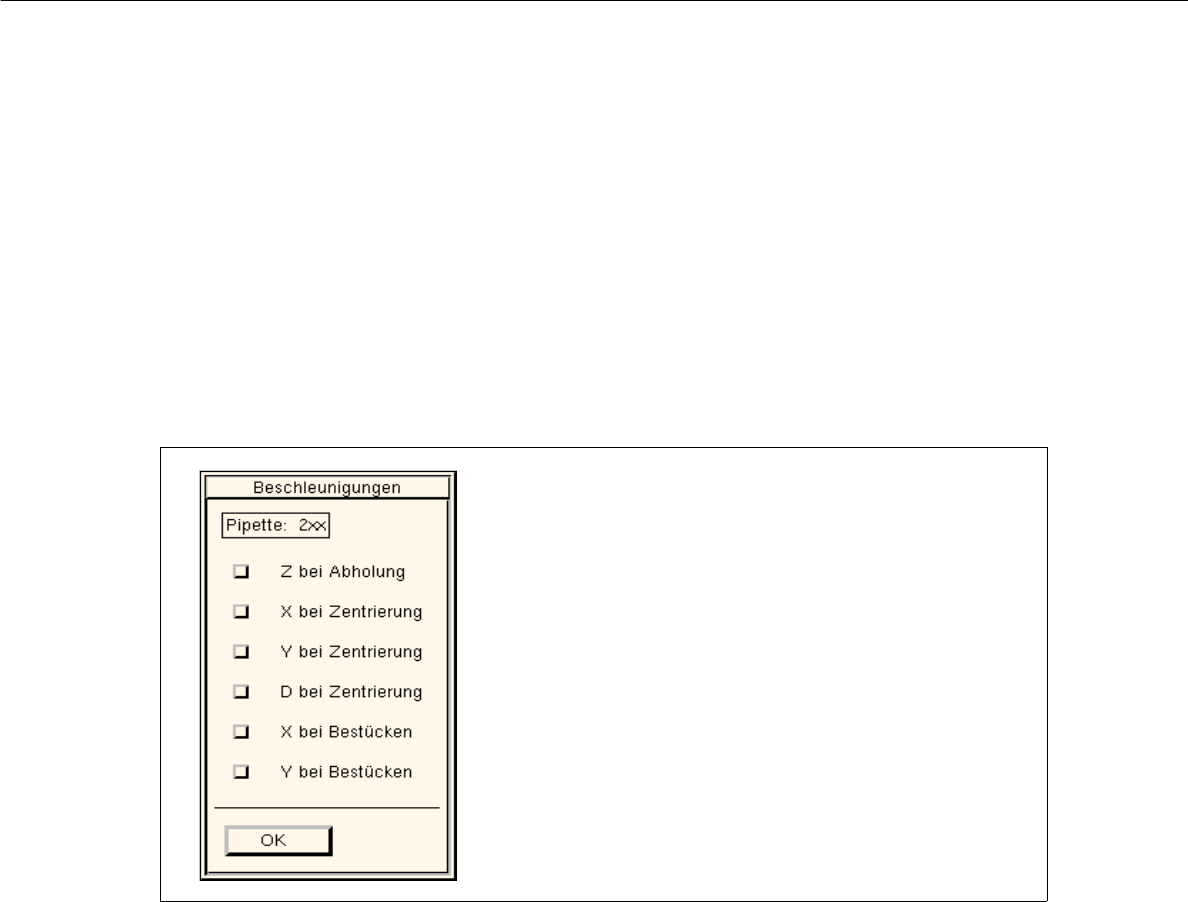 6.1.10 ábrát Párbeszéd ablak az egyedi “Gyorsítási” (“Beschleunigung”) folyamat beállítására (Példa: 2xx pipetta típus)