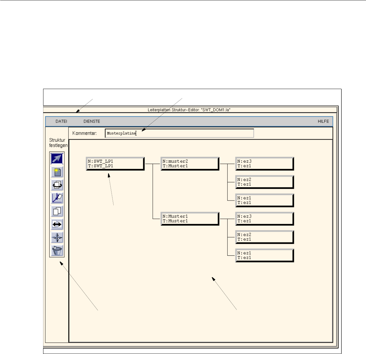 8.1.4 ábrát “Struktur-Editor” (Struktúra-szerkesztő) főablak (“Struktur-Mode” (Struktúra-mód) megjelenítés)
