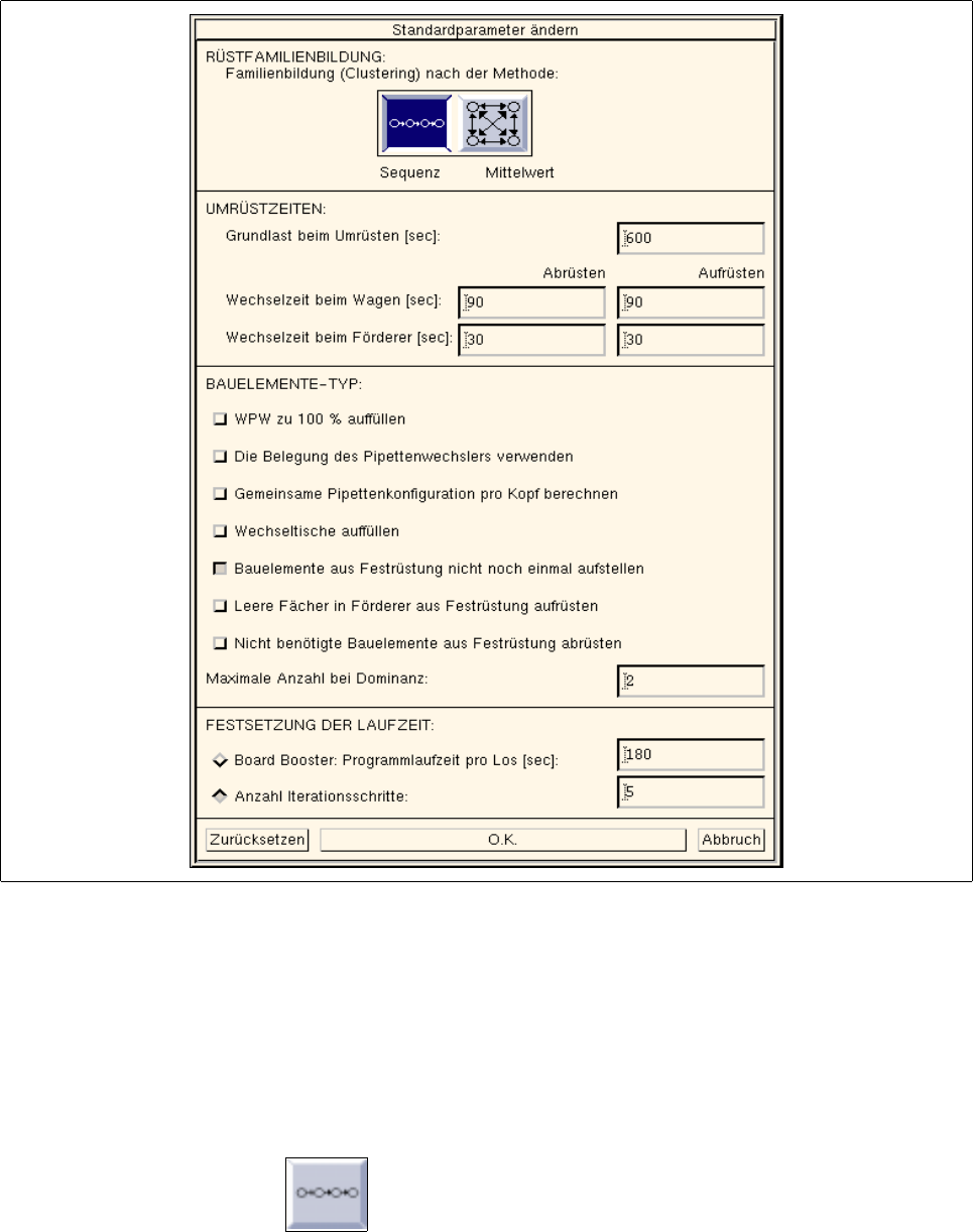 Megnyílik a “Standard-paraméterek xx.lose megváltoztatása” (“Standardparameter für xx.lose ändern”)