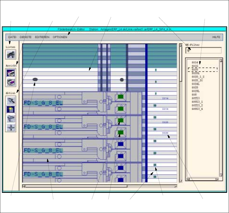 13.1.2 ábrát Förderbereichs-Editor (Szállítási terület szerkesztő) főablak