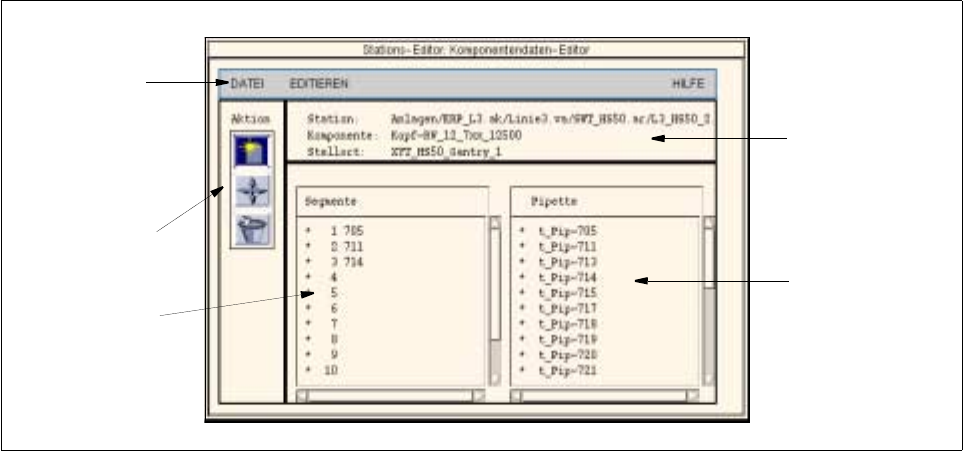A menüsor a következő menüket tartalmazza: “DATEI”, “EDITIEREN” és “HILFE” (“ÁLLOMÁNY”,