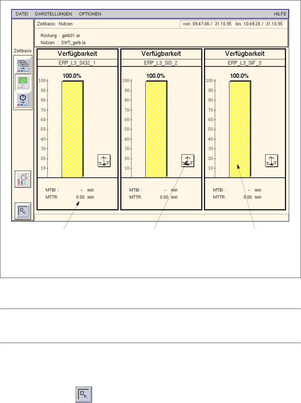 a gép az egész sor ill. az egyes állomások esetében a “Rendelkezésreállás” (“Verfügbarkeit”) diagramja alatt