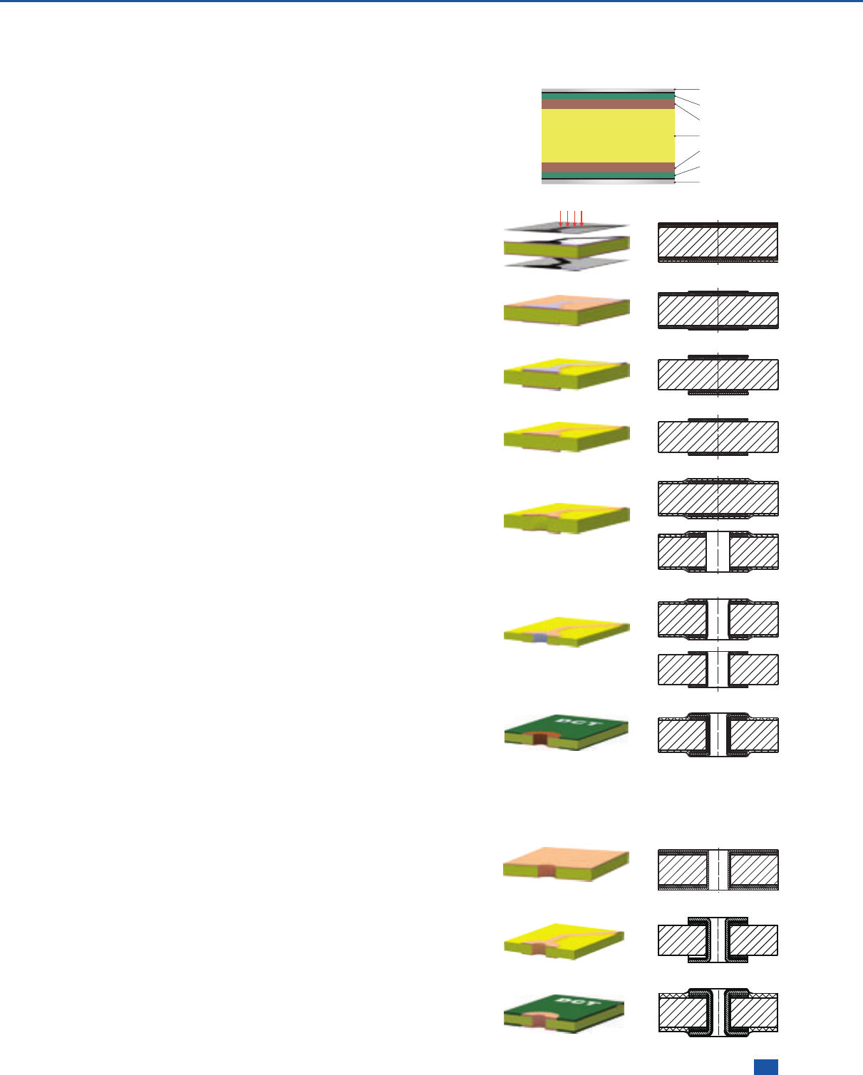 符号。多层板工艺步骤为:制内层导电图案→层压→