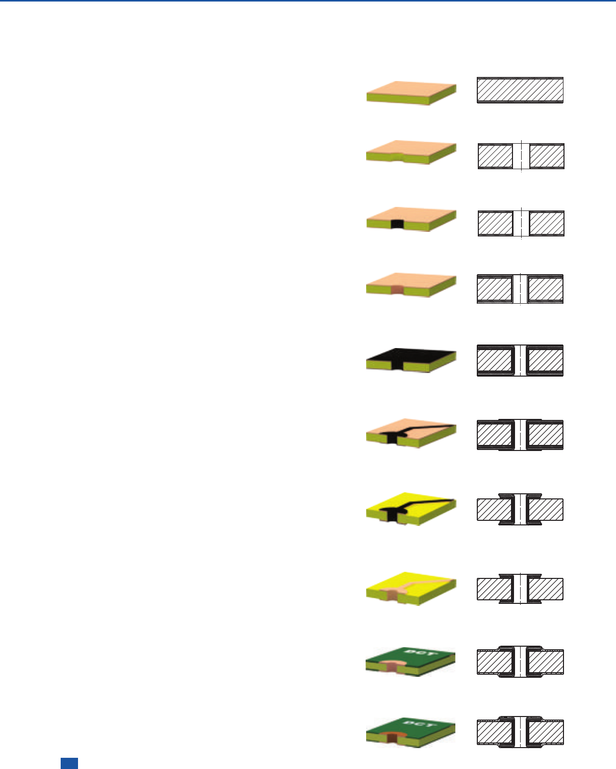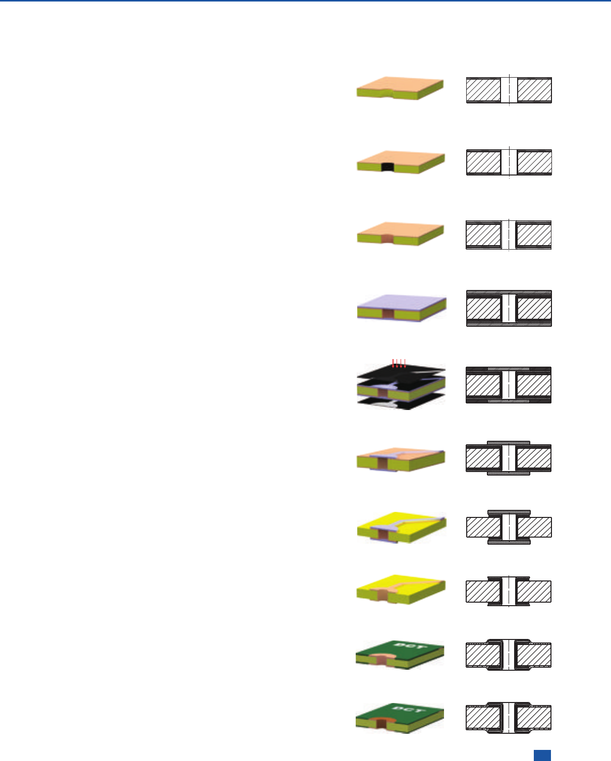 的经典工艺路线,从钻孔、孔金属化开始,把导电材料