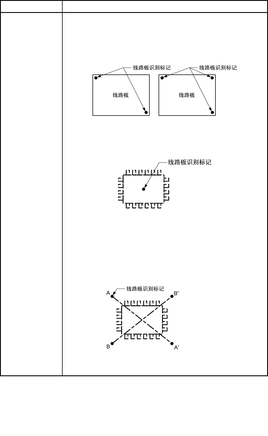 请在元件贴装点中心或周围附近的任意1点上配置线路板识别标记。
