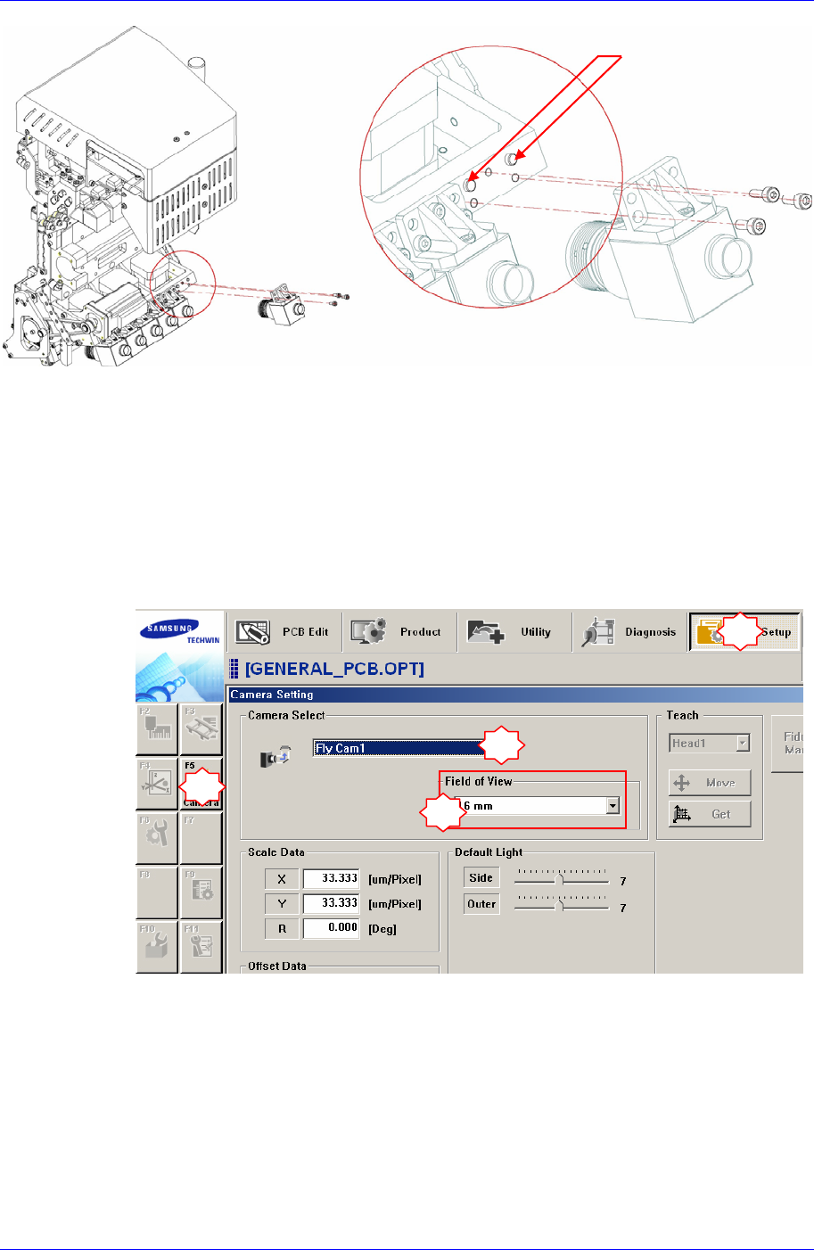 Head Module 4-13 9. 请执行 Fly-Camera Offset Calibration 。 详细事项请参照 “ 3.2.10.6 Fly Camera Offset Calibration (3-57 页 ) ” 。 10. 请执行 Fly to Fix Camera Of fset Calibration 。 详细事项请参 照 “ 3.2.10.7 Fly to Fix Camera & Fly Runou…