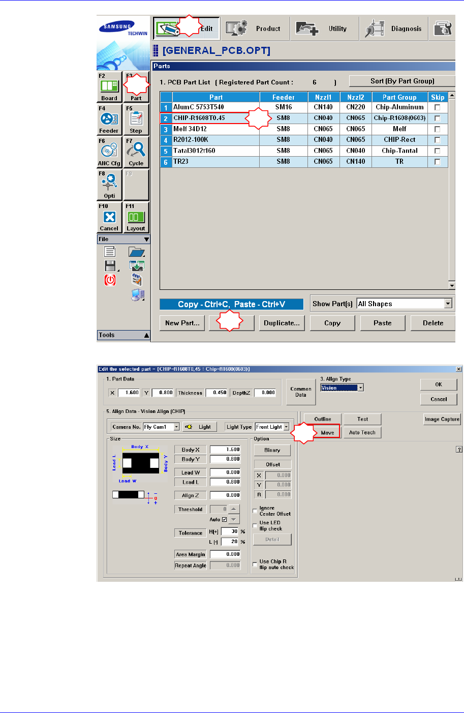 Samsung Component Placer SM41 1 Service Manual 4-28 如果显示 “Z and Mirror axis will move or Head Block will move to the Fix Camera Position” 信息,请点击 Ye s 。 那么 , Z 轴和 Mirror 移动到识别位置。 边看 ‘SMV ision’ 窗,轮视 Flying Camera 1 …