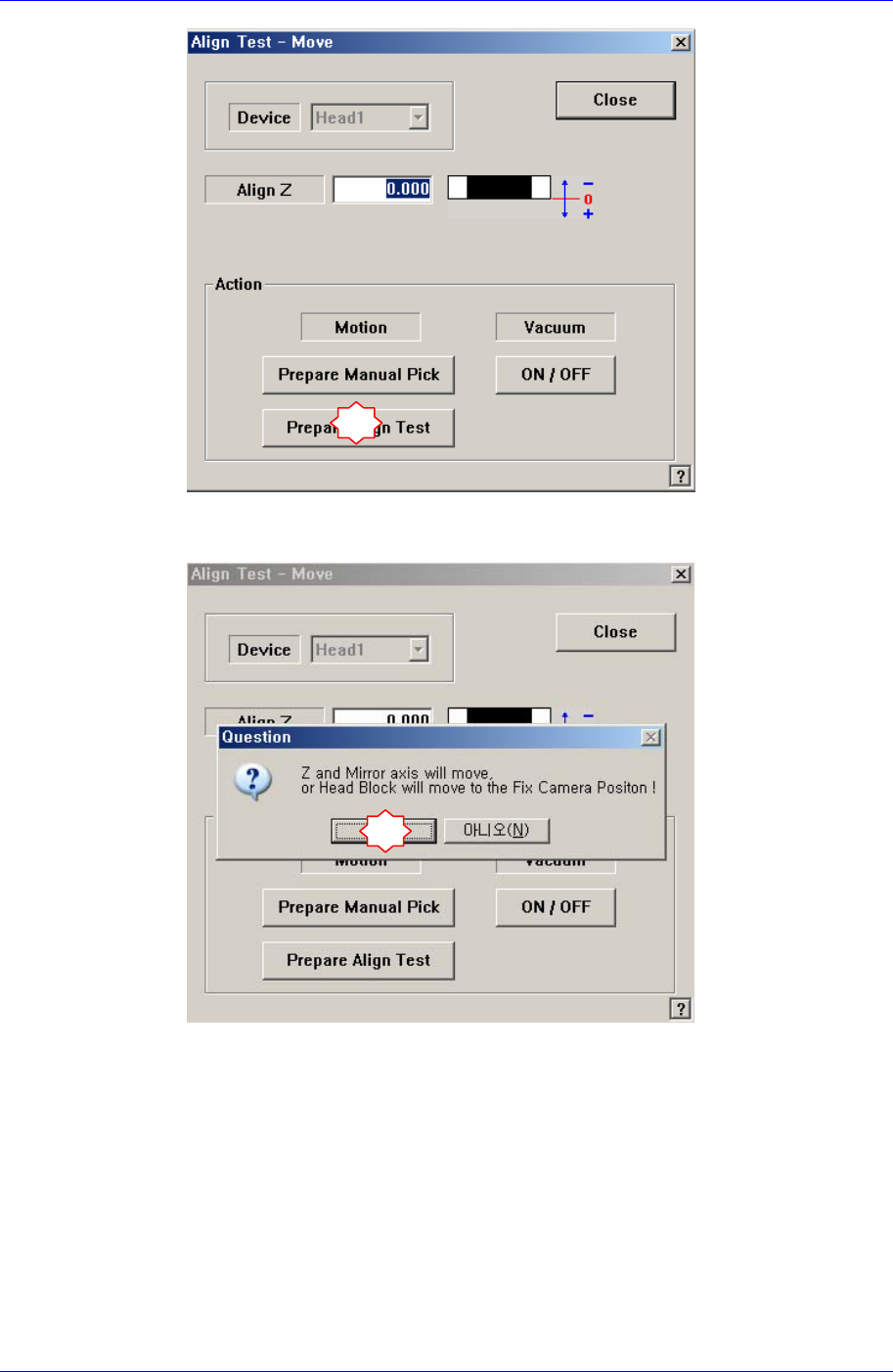 先点击<Move>按钮后,再点击<Prepare Aligne Test> 按钮。