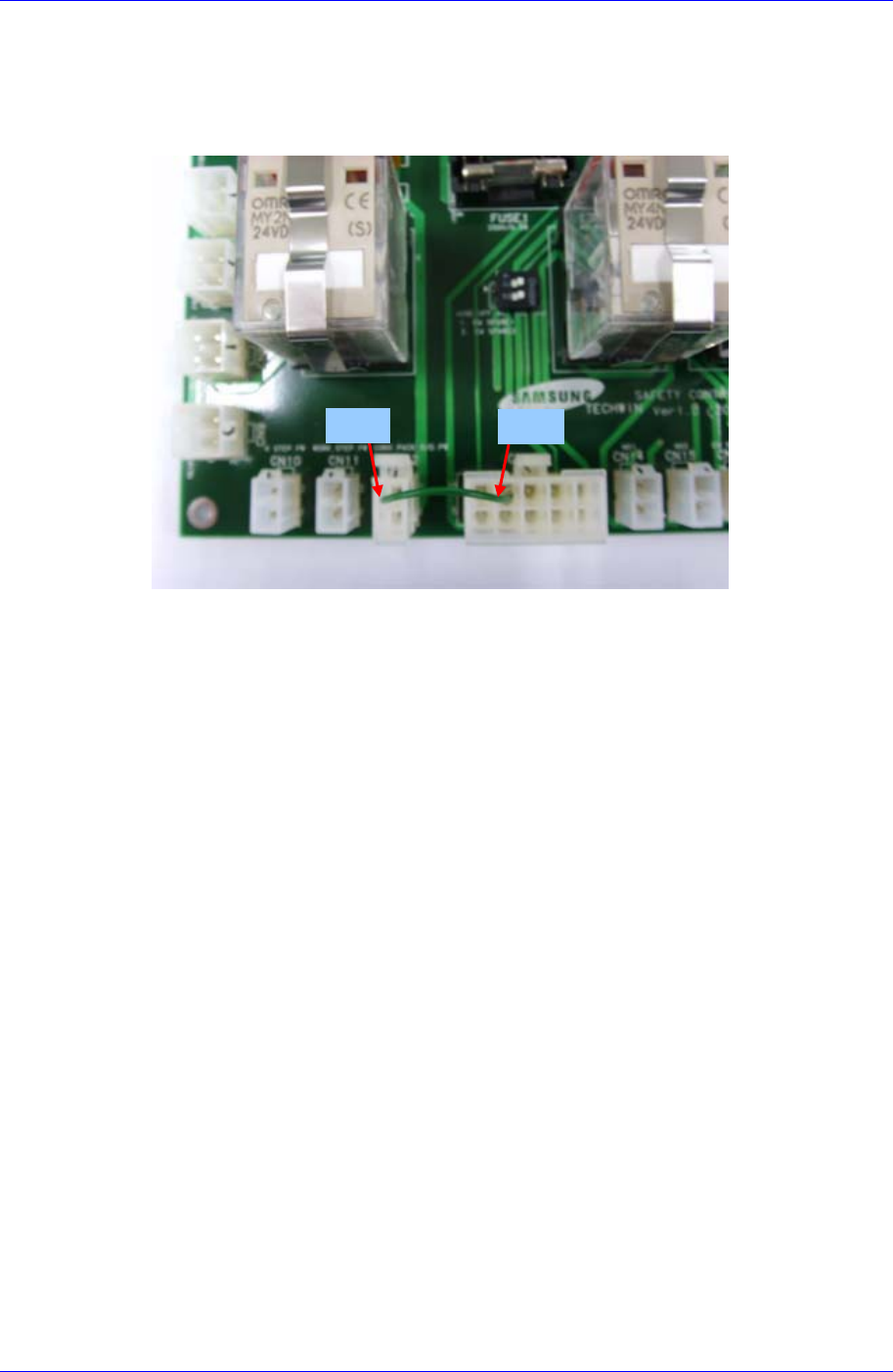3. 同以下照片在Safety Control Board上把2号电缆与CN13,CN12号进行连接