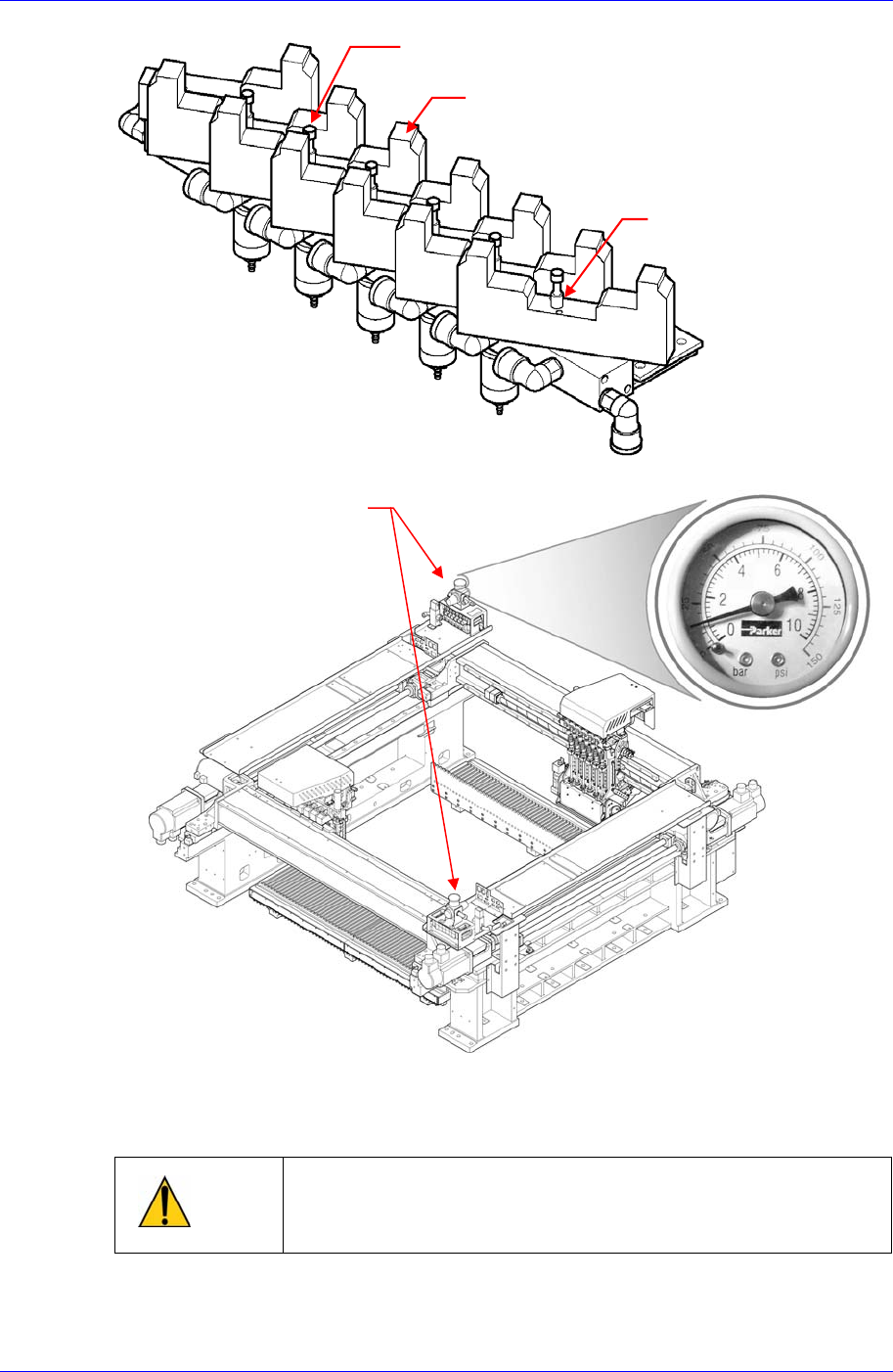 Head Module 4-85 4.10.3.4. Blow 检点 Head Blo w Air Pr essure Gage 中得到压力控制后传达到头部 Air 程序的 Blow Air 通 过 Blow Air Inlet 引入,再通过 Manifold 传达到各个 Blow Solenoid 阀。 V acuum Air 个别通过 Manifold 传达到 V acuu m Solenoid 阀。 请使用流量调节阀调整 Blow…