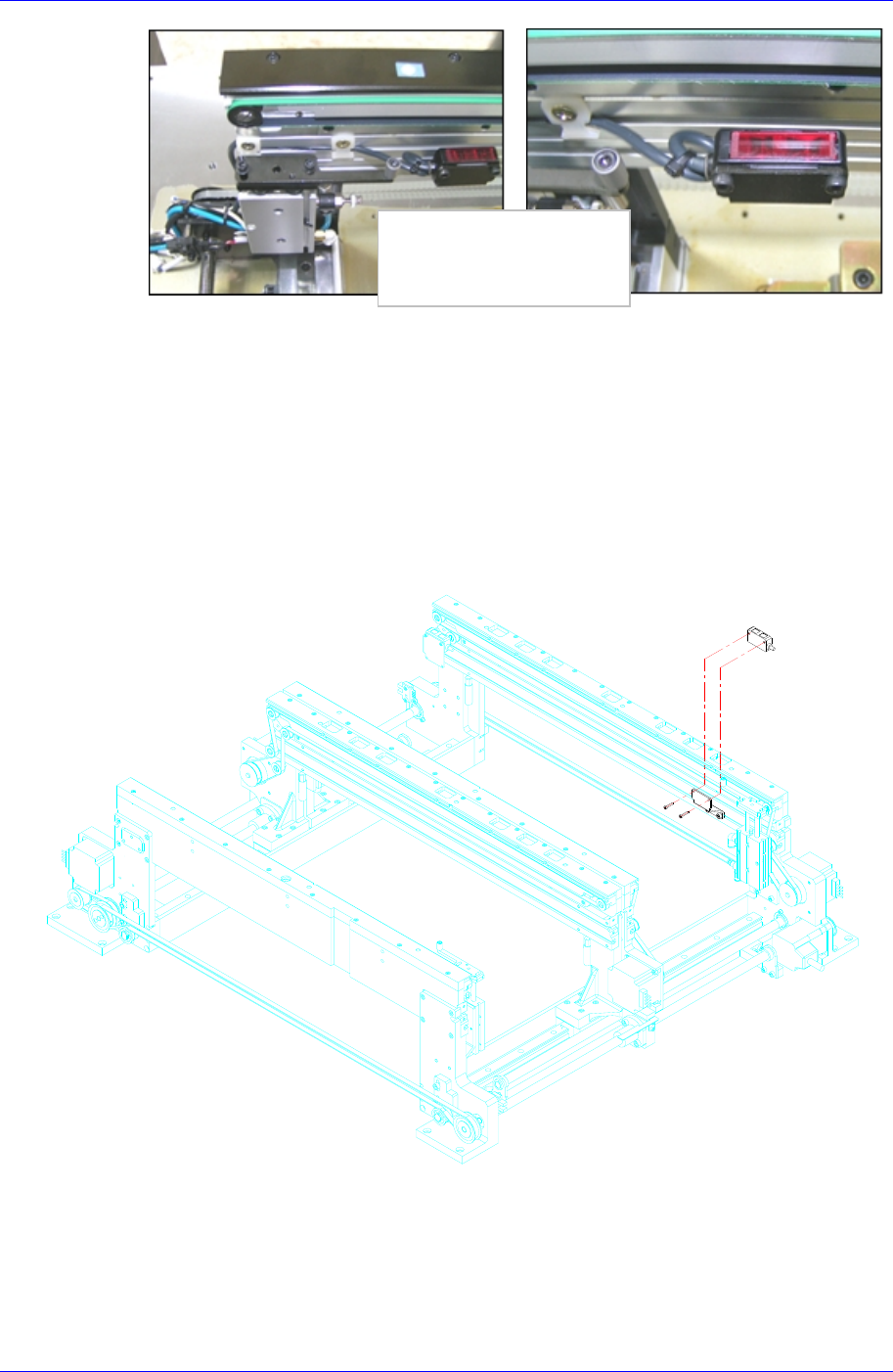 5. 重新设置传感器的位置。详细的事项参考 Conveyor Calibration “3.2.5.1