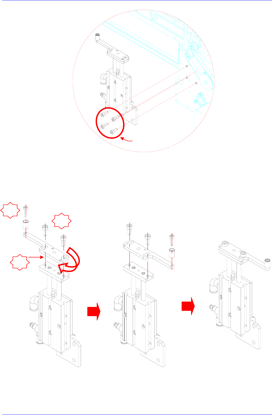 16-1 拧开固定Stopper Cylinder的固定螺丝(M3-4个)后,如下图进行分离。分离出的