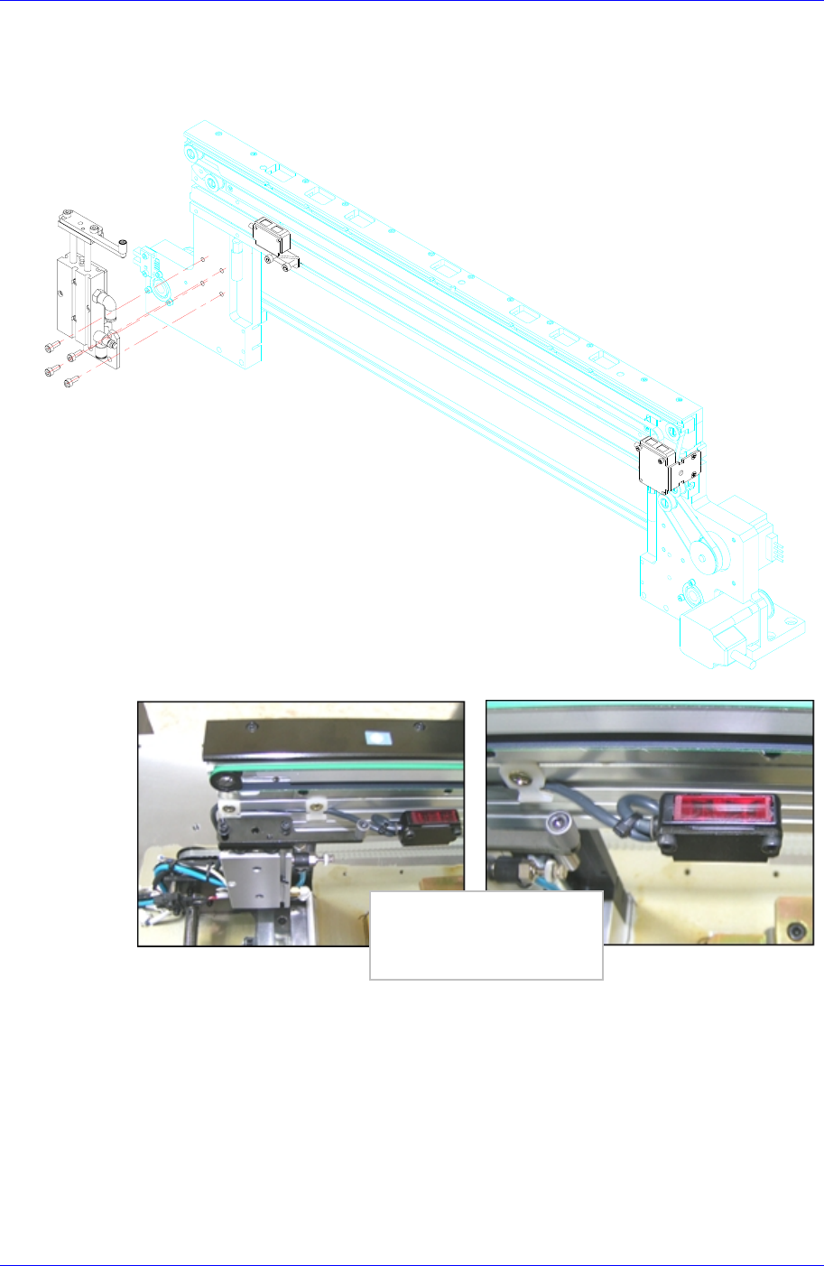 Conveyor & BUT 5-51 19. 请用拆卸的逆顺序组装 传感器和汽缸。此时传感器的中心到 CYLINDER 的距离 要对准为 38mm ± 1.0 mm 。 20. 如照片所示 进行配线后用 Cable T ie 进行固定。 21. 由于 PCB Flow 变更如同 Stopper Cylinder 位置变更分离出组装在 S topper Cylinde r 的空气软管后重新组装进行使用 。 确保传感器电缆的余裕 …