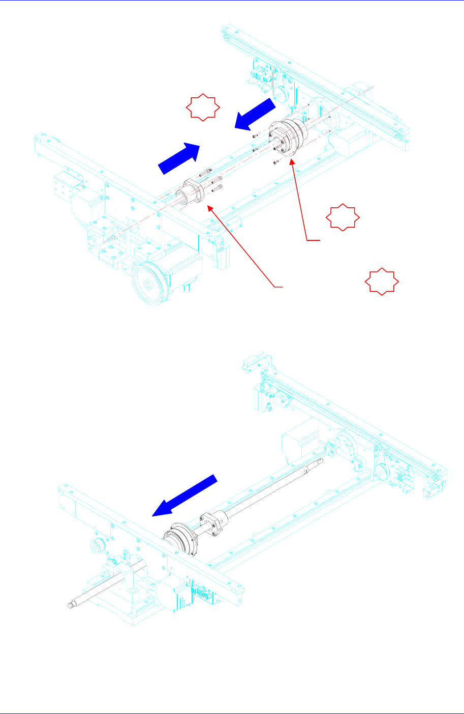 8. 如下图向箭头方向倾斜Ball Screw进行分离,用拆卸的逆序组装新的部件。