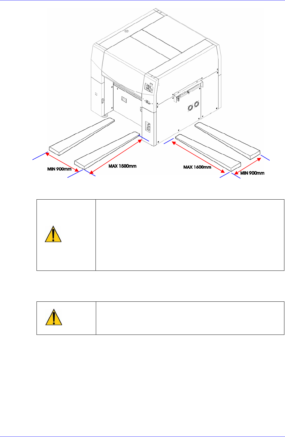 另外,不可以让设备倾斜,并检查叉式升降机的升降臂位置