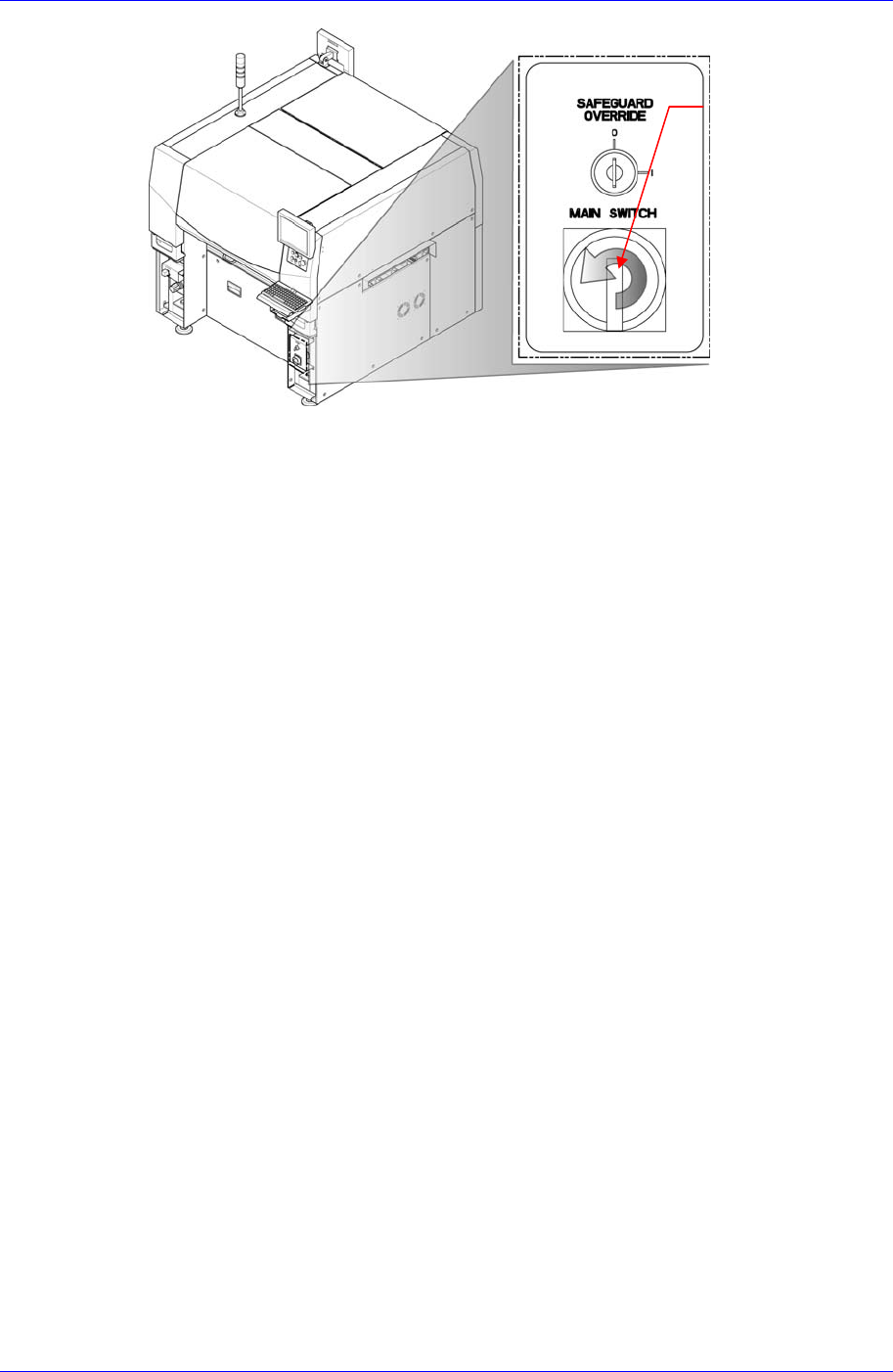 3. 作业结束后打开设备前面的Main Switch,开启空气阀,启动PC。