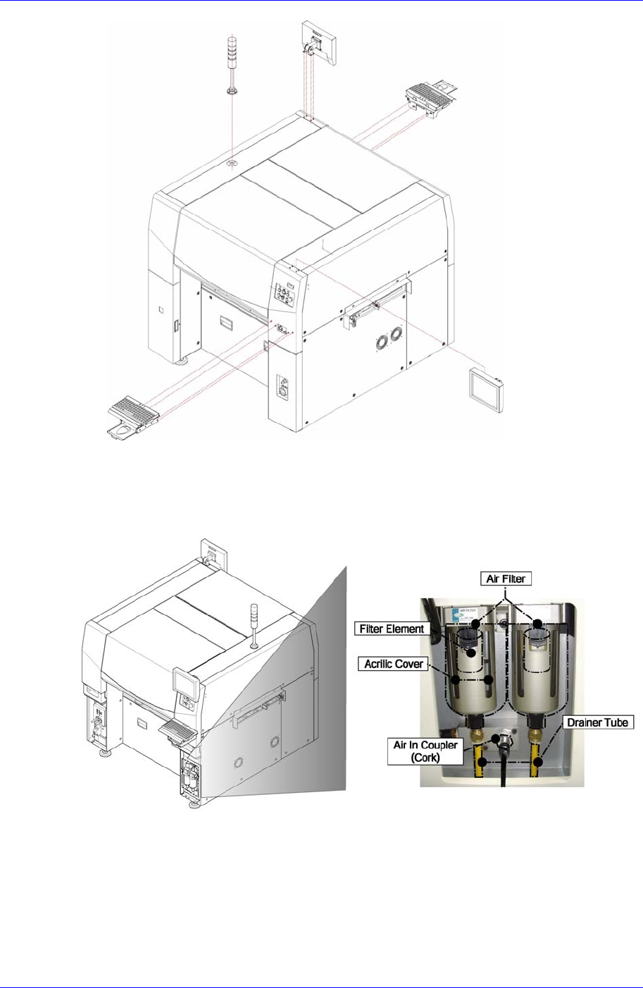 Samsung Component Placer SM41 1 Service Manual 2-8 图 2-2. 显示器和 signal tower 的设置 9. Air Main Inlet 方向连接气压。此时,请确认设备安装工厂内 Air Main 连接部是 否安装 Air Filter 。 旋转调整器的把手,调节气压到 0.45~0.55Mpa. (设备最大 耗气量 300 N ℓ /min. 此时,输入空压胶皮管的直径建 …