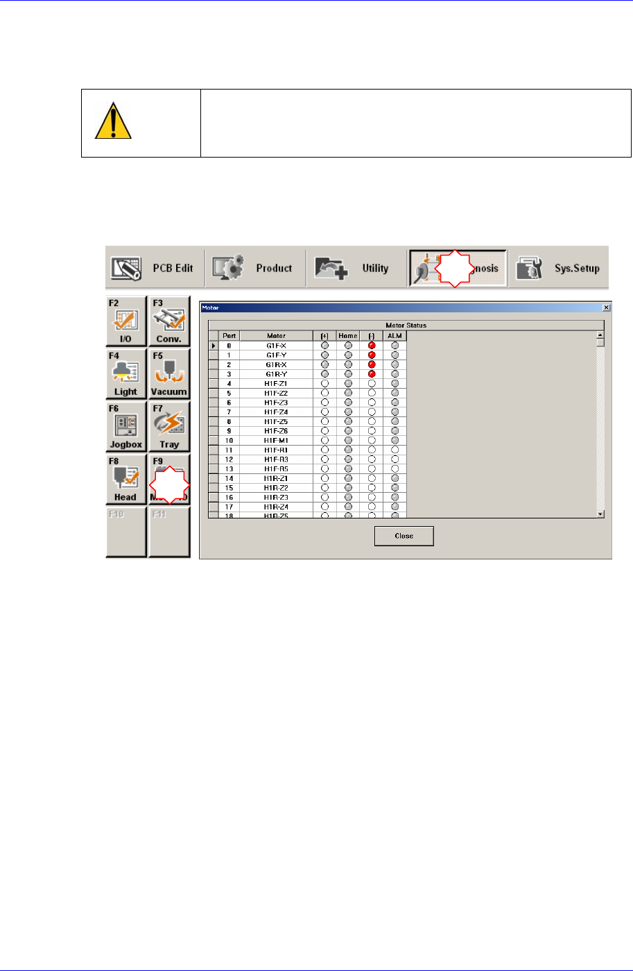 3. 全体程序完成 不按Front OP Panel上的<Ready>按钮的状态下, 要确认Motor的