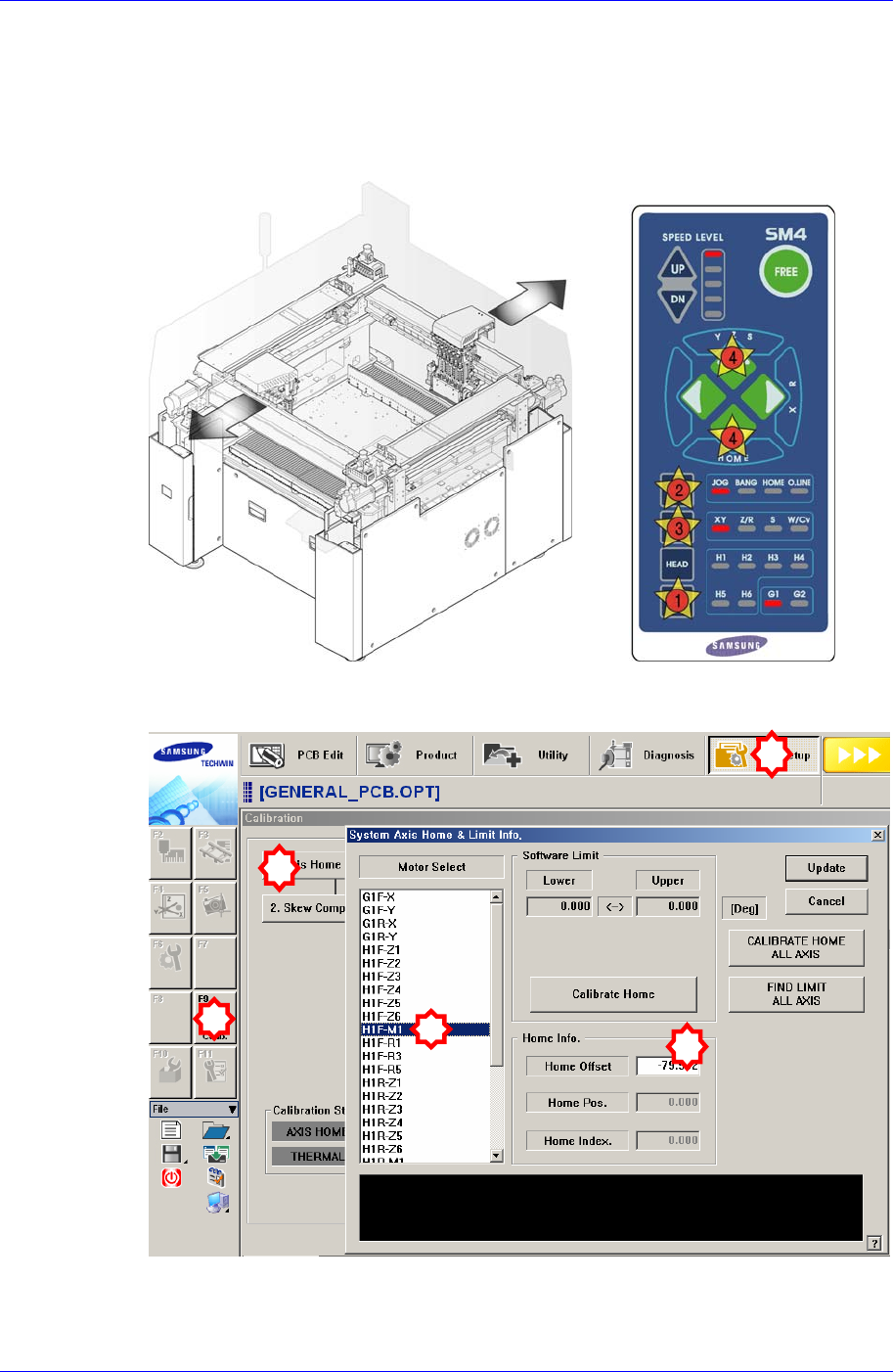 2. 在’Sys. Setup’菜单选择‘Calib.’ 下位菜单后,点击<1.Axis Home Calibration> 按