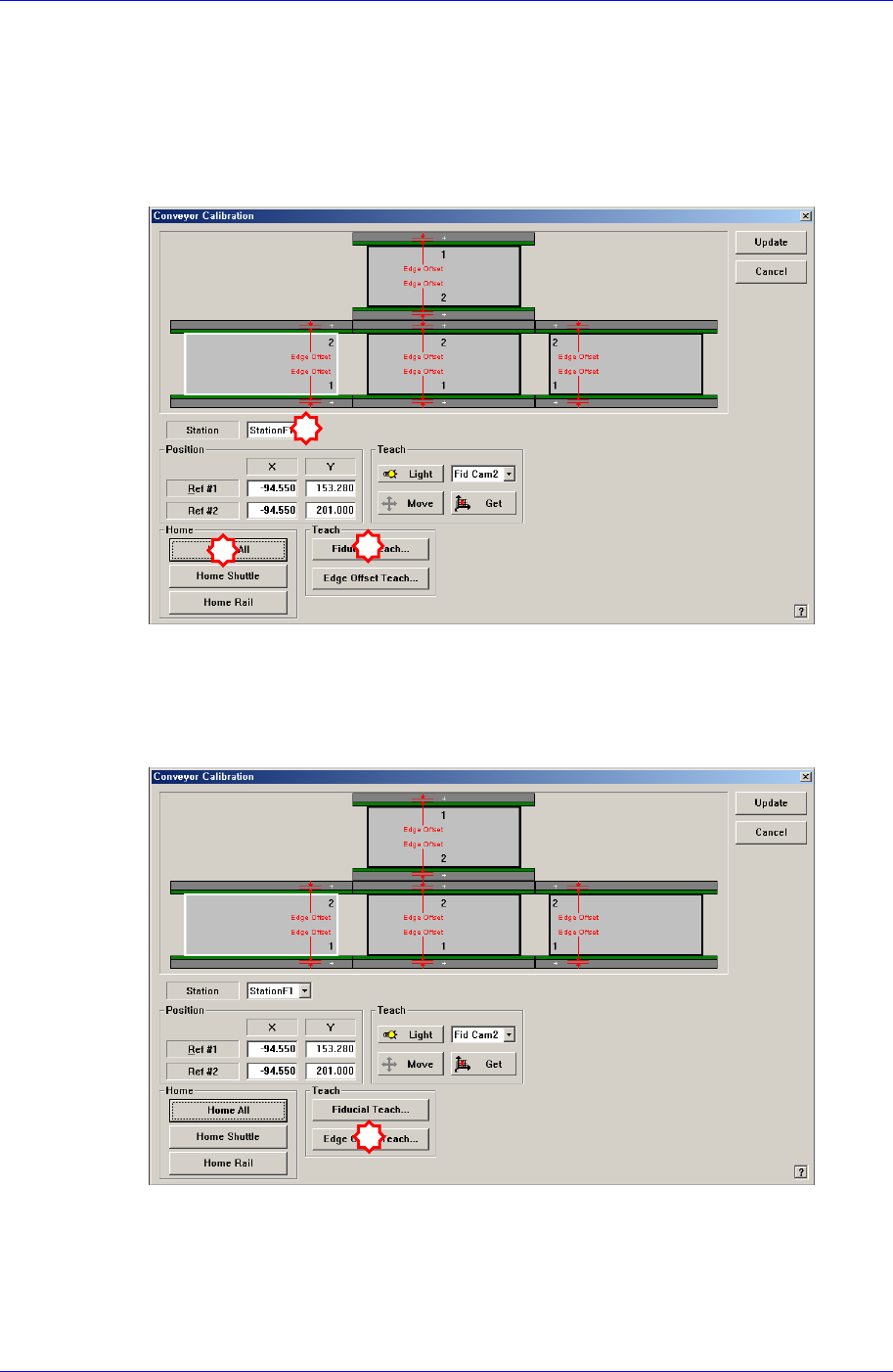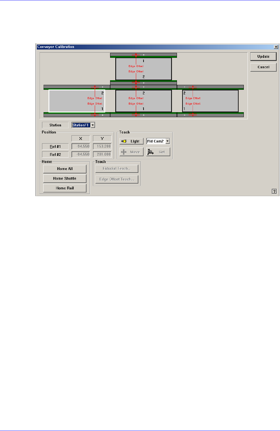 1. “Conveyor Calibration” 对话框的 单击<Home All> 按钮。