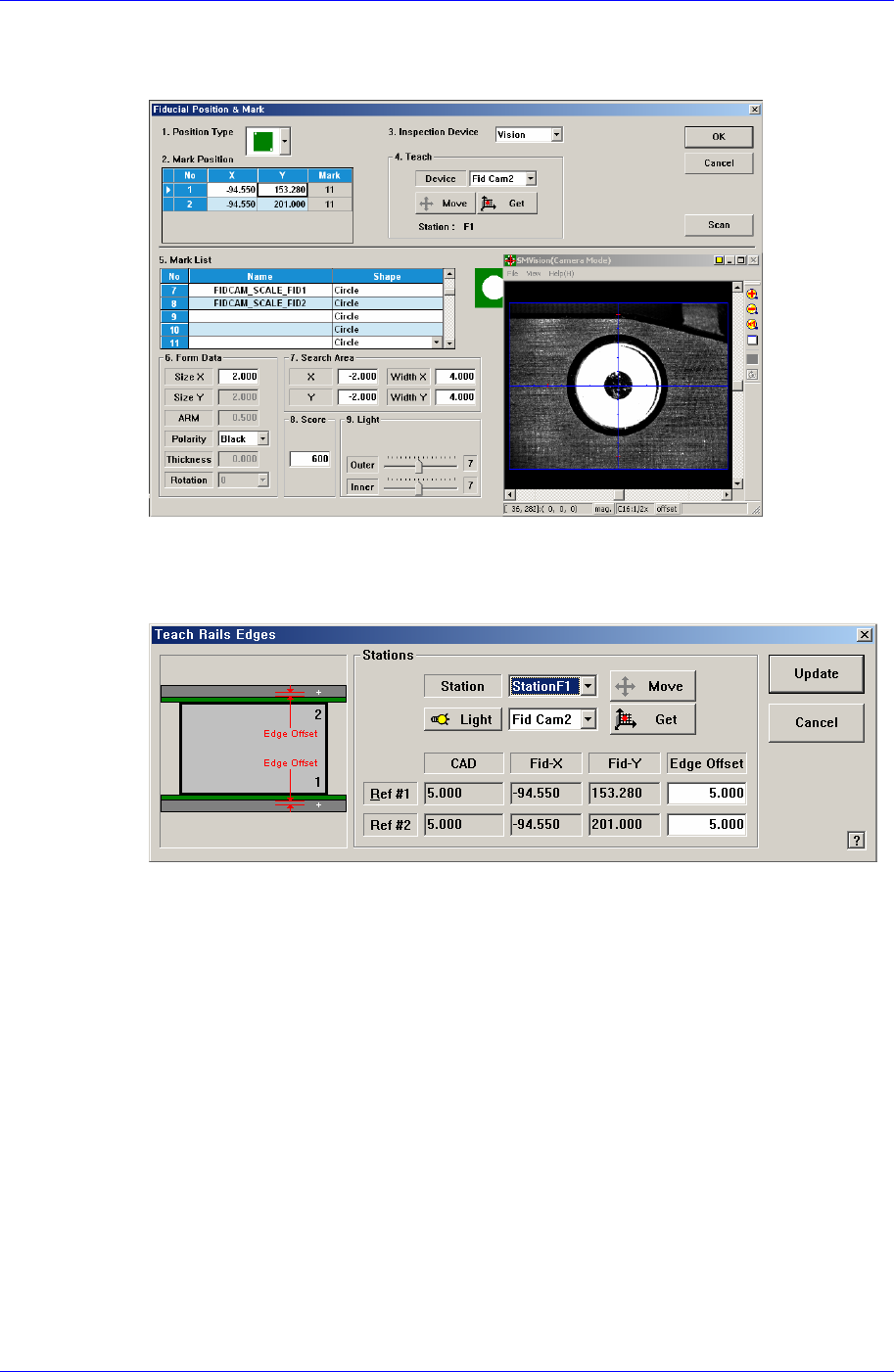 3. 点击<Fiducial Teach…>按钮,正确示教被选Station的各Fiducial Mark后,点击