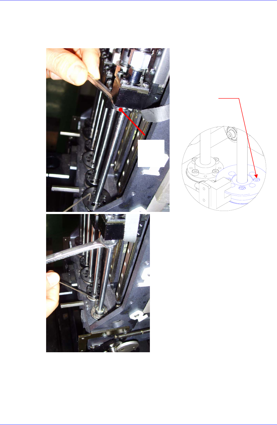 4. 分离R轴sensor dog时,用扳手(7mm)夹紧home(A),利用扳手除去下图的固定