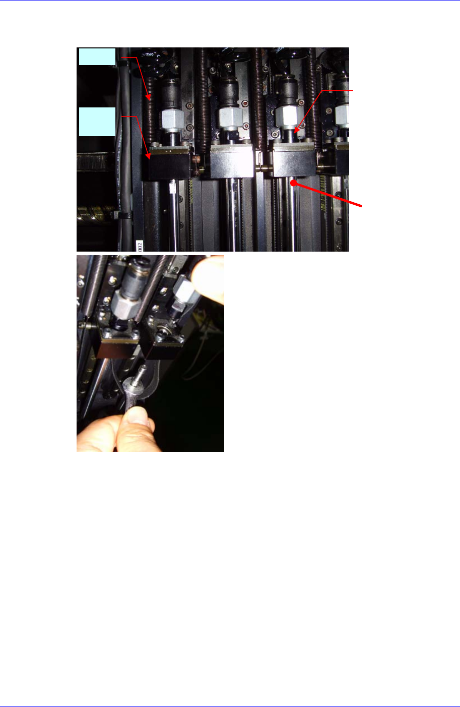 Samsung Component Placer SM41 1 Service Manual 4-72 4. 分离 R 轴 sensor dog 时,用扳手 (7mm) 夹紧 home(A) ,利用扳手除去下图的固定 螺丝 (M2–4 个 ) 。 然后,利用扳手除去连接 Ball Spline Nut 和 Spline Housing Ass’y 的下图中 1 号 固定螺丝 (M2–4 个 ) 。 固定螺丝 (M2 – 4 个 ) Ho…