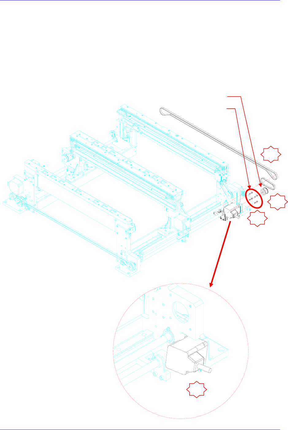 6. 利用1号Belt的弹性手工进行分离后。 拧开Motor-Pulley的 Set Screw(M3-2개)(