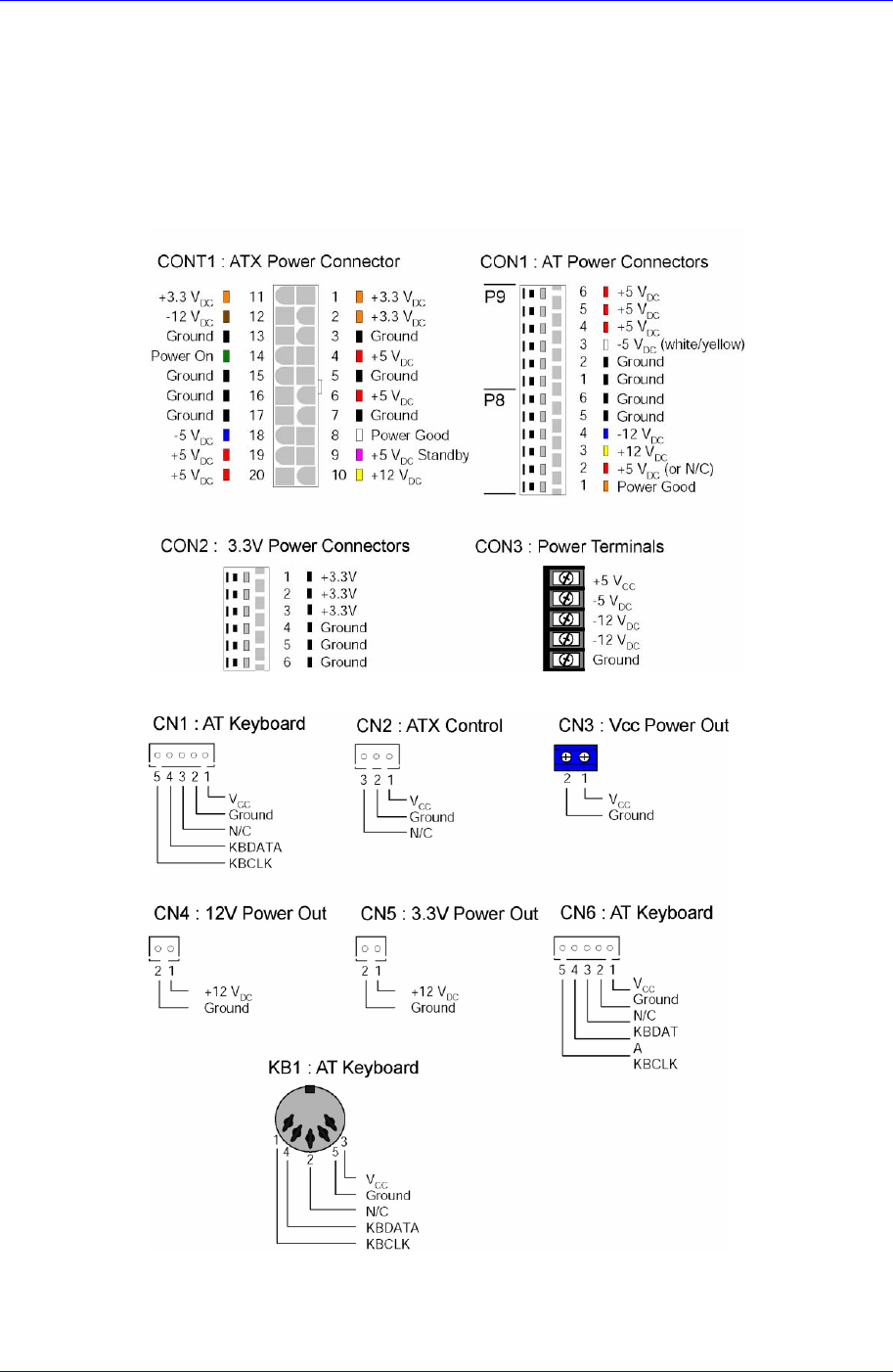 20 pin ATX connector, standard AT connector, 5-pin terminal block