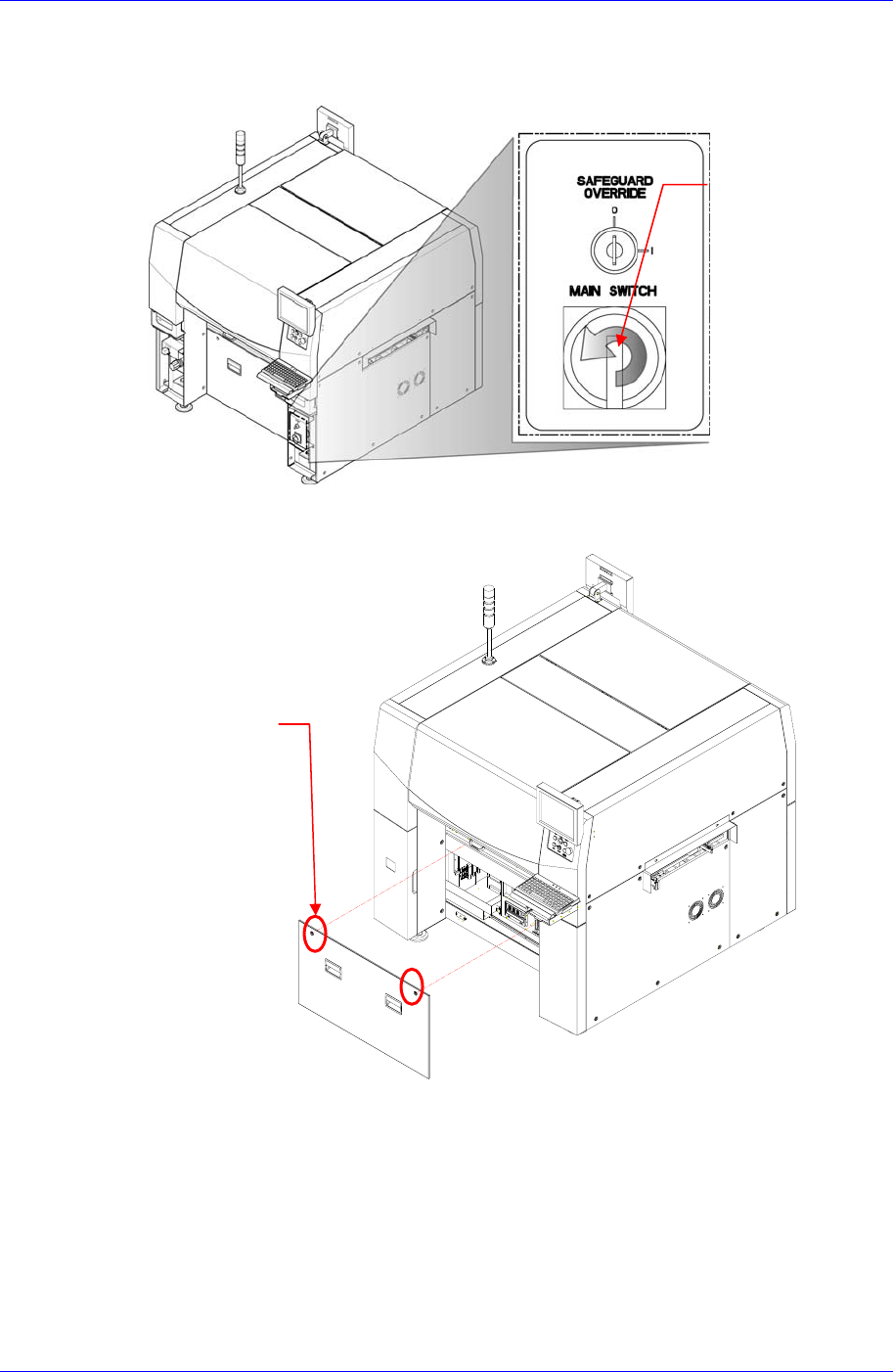 7. 打开设备前面的Main Switch后,测试相应板关联设备的动作,确认是否正常