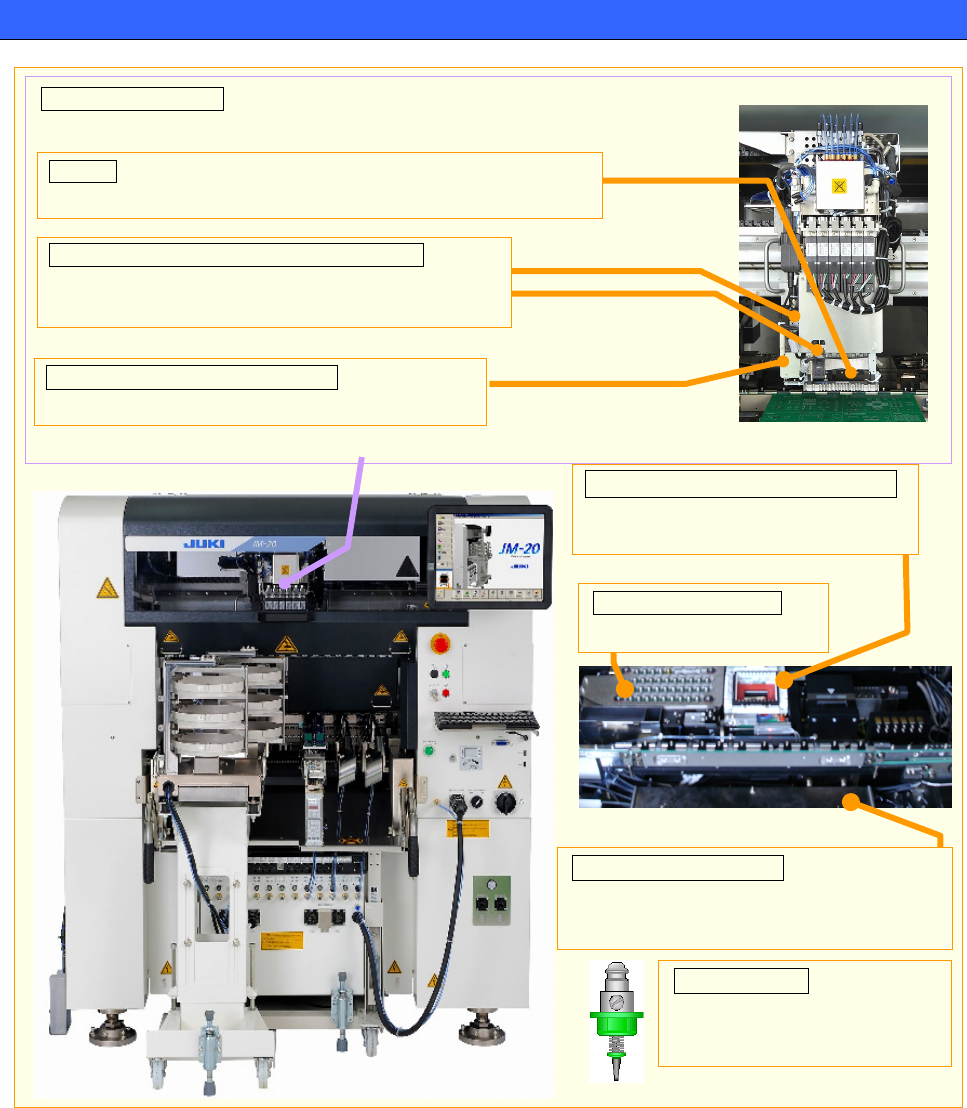 操作手册 I 2-1 2 设备的概要 2-1 本设备的概要 JM-20 与为使手动实装工序实现 自动化而开发的 JM-10 相比,是对应贴片元件能力更高的新一代多功能 平台。 对应的元件供给设备品种众多, 有径向供料器、 圆型供料器、 矩阵托盘交换器,可以根据生产条件选择 最适合的供给设备。 并且,使用 新开发的可更换机械卡盘吸嘴, 实现了至今不能对应的大 型与异型元件的贴片。 ①吸取元件 ③在基板上贴装元件 ② 检出元件中心与贴片位置…
