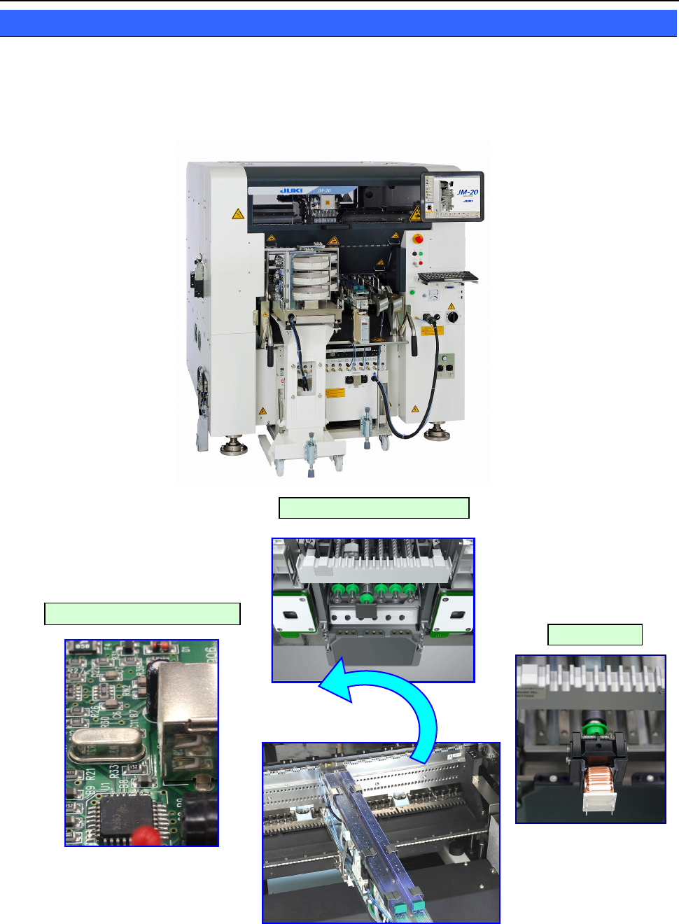 JM-20 与为使手动实装工序实现自动化而开发的 JM-10 相比,是对应贴片元件能力更高的新一代多功能