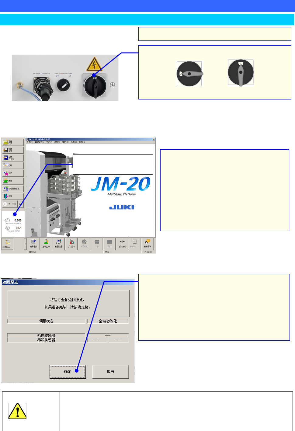 1.执行返回原点时,请绝对不要把手和头部等伸进装置内部。