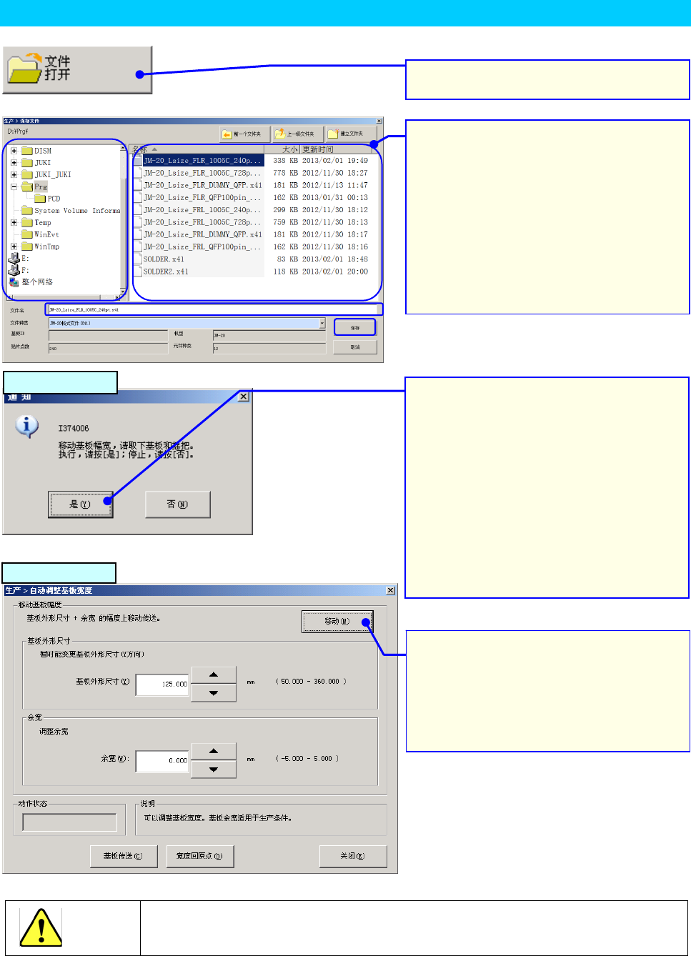 在自动调整基板宽度对话框中选择「移动」后,传送动作即开始。
