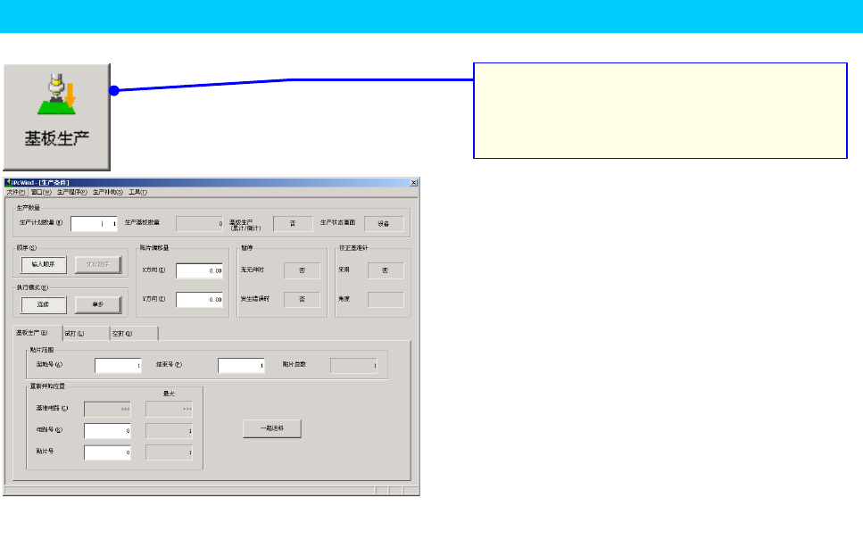 操作手册 I 3-5 S tep4 选择生产画面。 1. 从功能栏中选择 [基板生产]按钮。 即显示生产画面。